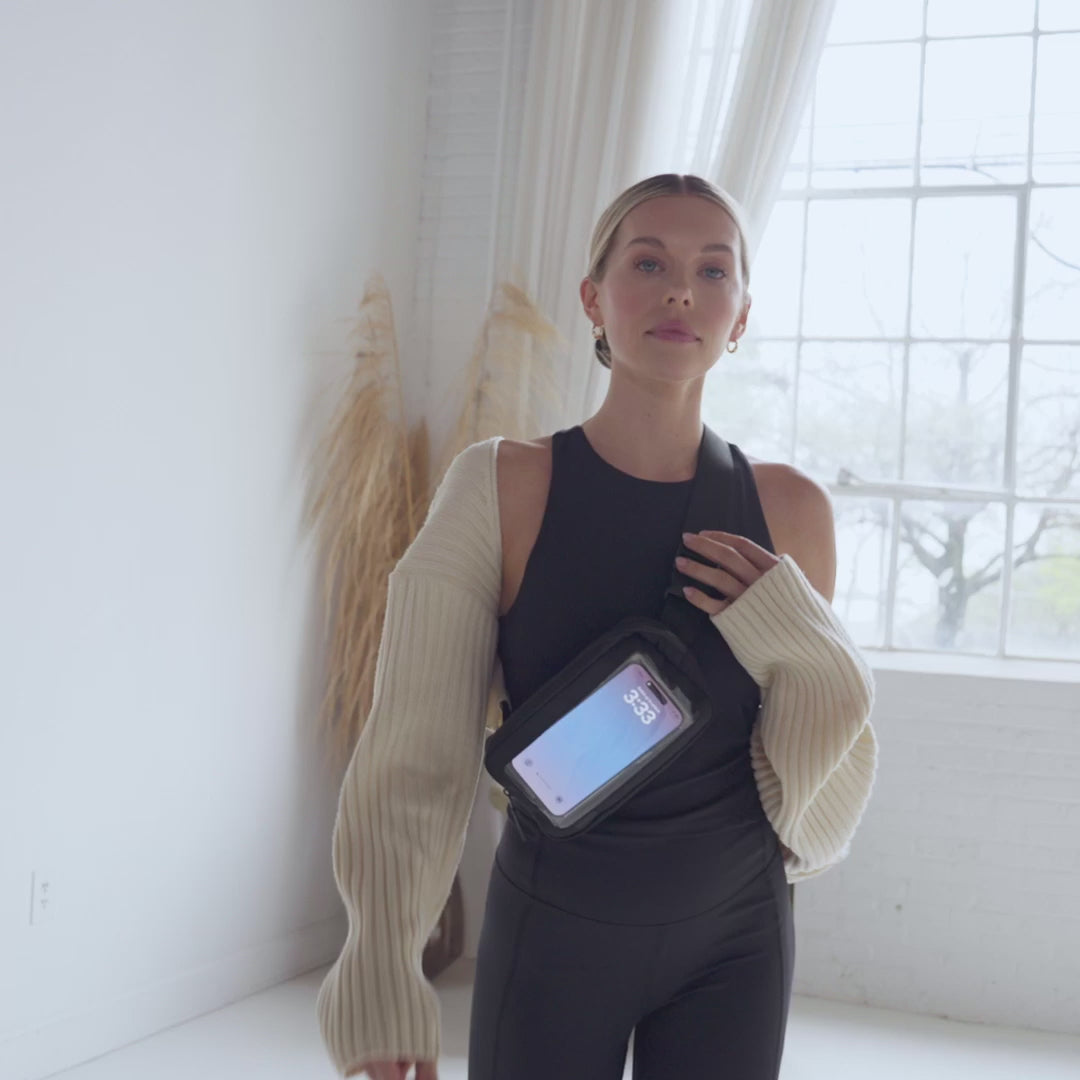 - Fully adjustable comfort strap for crossbody or waist wearing